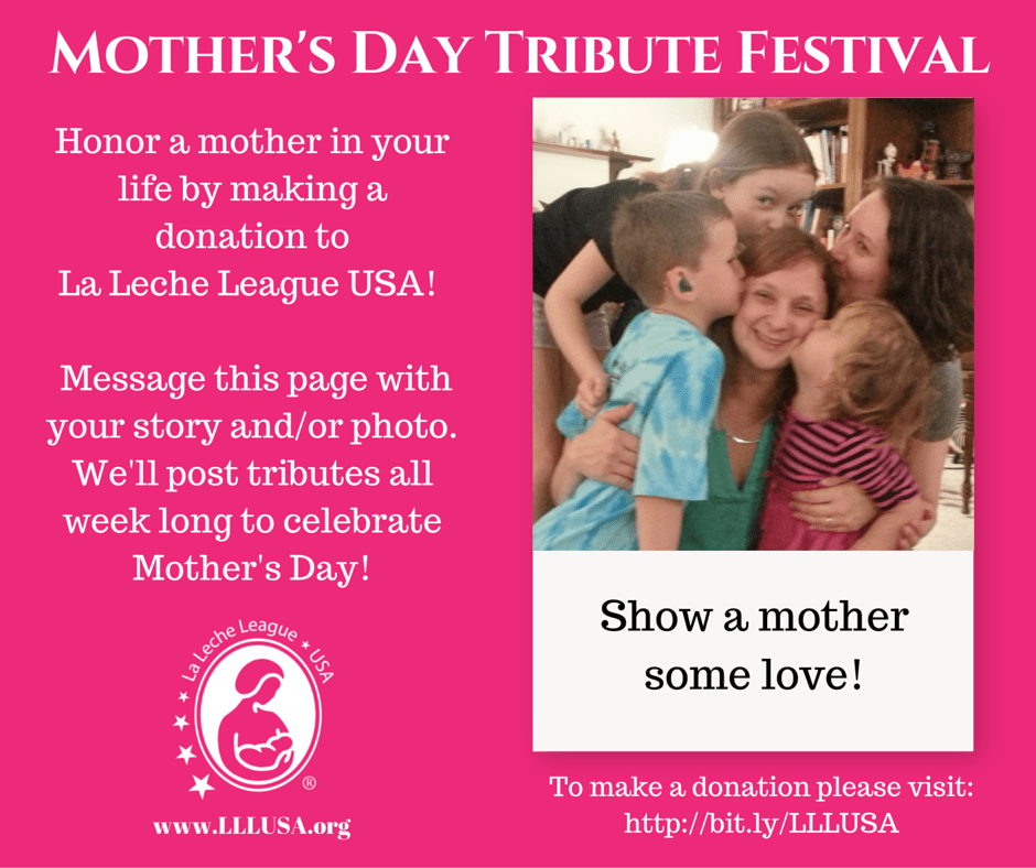 All week long we are sharing tributes, stories, and photos of those who have inspired or supported our mothering in a Tribute Festival on the La Leche League USA Facebook page. Be sure to stay tuned in! It’s going to be an inspiring week!